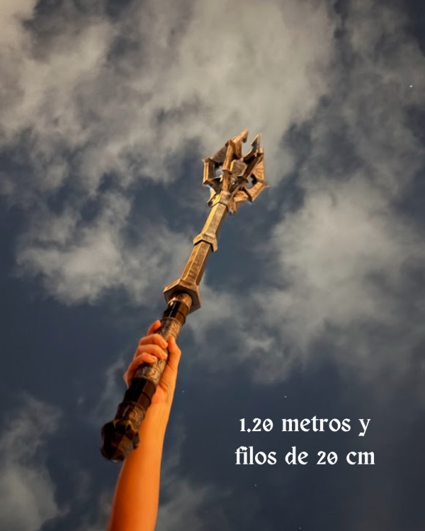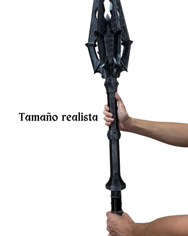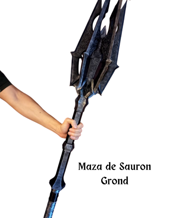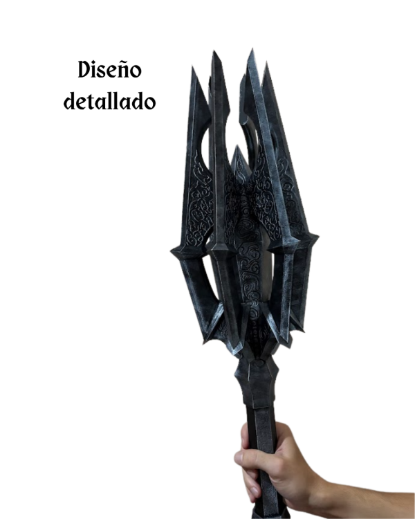 Imponé presencia con esta impactante maza inspirada en el Señor Oscuro. Una pieza de gran tamaño diseñada para fans del universo fantástico que buscan destacar su espacio con un objeto único, poderoso y lleno de carácter.