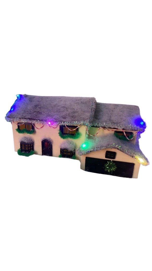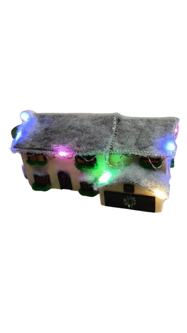 Su diseño detallado recrea la clásica casa familiar decorada con luces de Navidad, convirtiéndola en una pieza ideal para ambientar cualquier espacio durante las fiestas o para exhibir todo el año como objeto de colección.