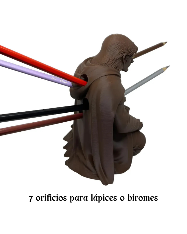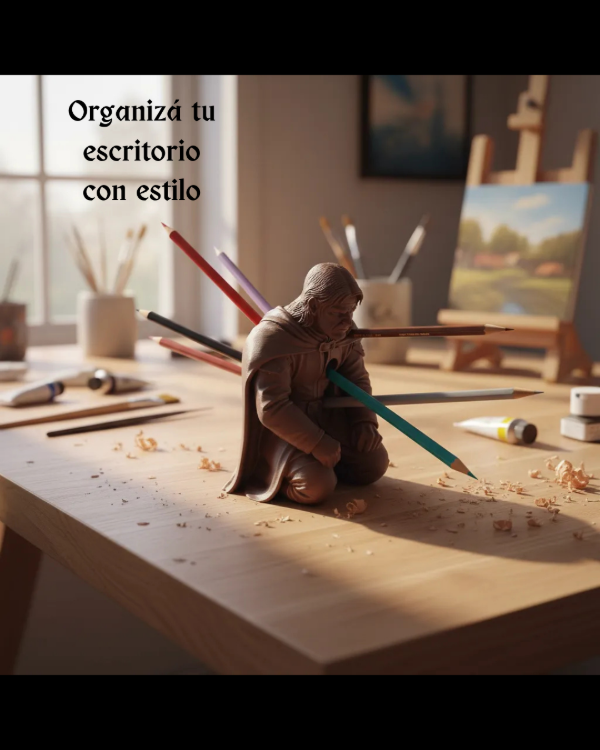 Cada orificio permite colocar lápices o biromes, combinando funcionalidad con una estética poderosa y coleccionable.