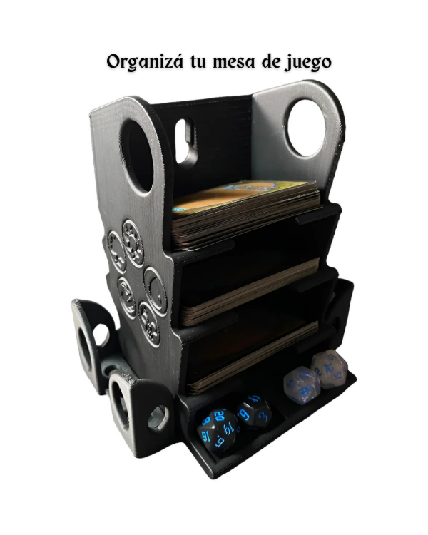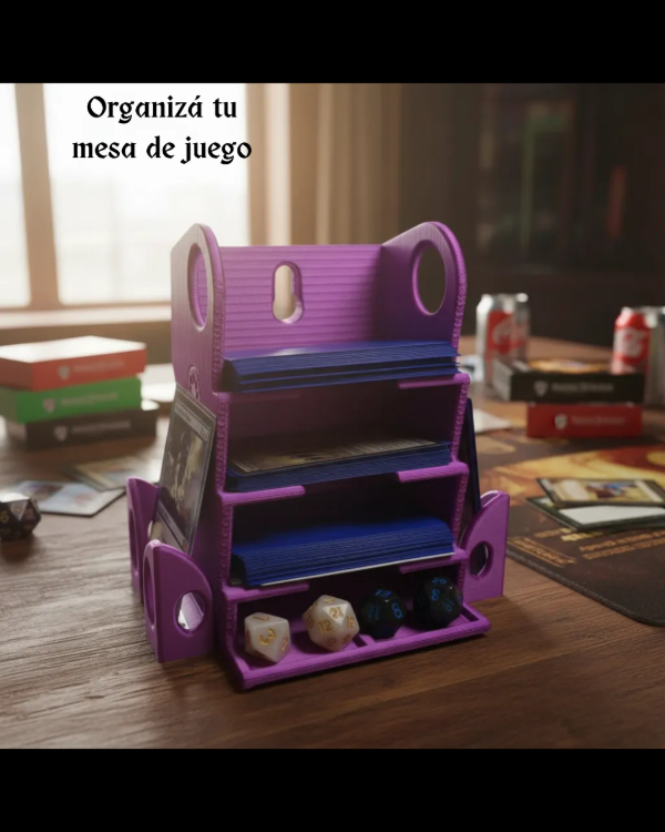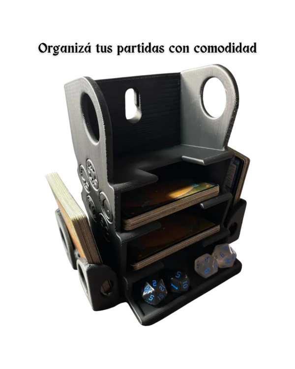 Organizá tus partidas con estilo y practicidad. Este soporte está diseñado especialmente para jugadores que buscan una mesa ordenada, mayor comodidad y una experiencia de juego más inmersiva.