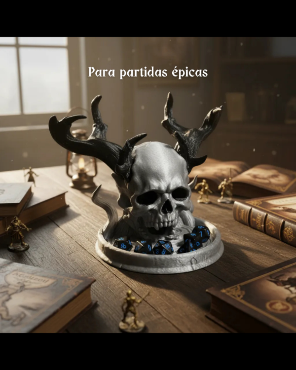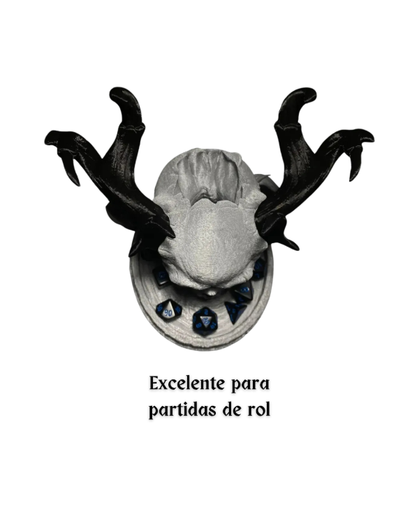 Sumá estilo, funcionalidad y personalidad a tu mesa con esta Torre de Dados con forma de Calavera con Cuernos. Un diseño impactante que convierte cada tirada en parte de la ambientación.